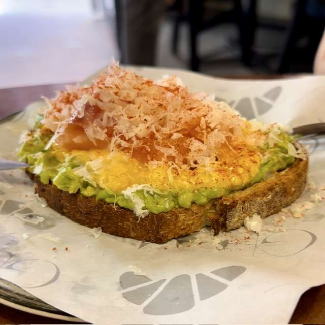Pero si hay algo imprescindible de la parte salada de Glea es su bikini. El sándwich de jamón y queso llevado a la excelencia. Imagina: un pan brioche tostadito con mantequilla, crema de trufa, jamón asado, y doblete de quesos, Havarti y Cheddar. ¡Un disparate!