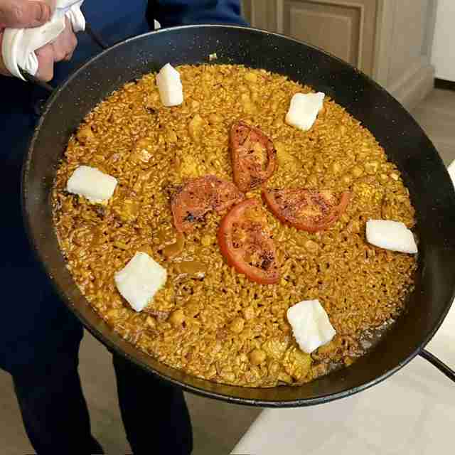 Por un lado, uno muy típico de la zona de Elche: el arroz de cebolla y bacalao. Sencillo, pero muy rico.