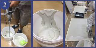 - Aplicación del microcemento: Prepara la mezcla de microcemento siguiendo las proporciones recomendadas. Aplica el microcemento con una llana de acero inoxidable, extendiéndolo de manera uniforme sobre la superficie.
